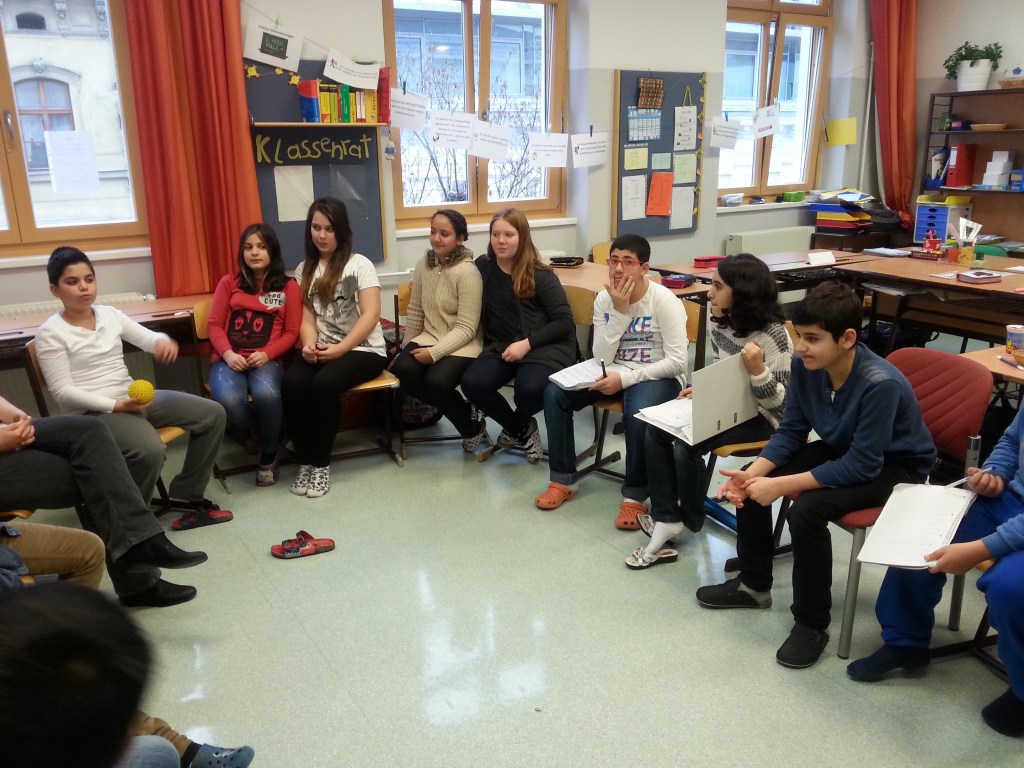 Klassenrat: Der Klassenrat hat die Stärkung des demokratischen Miteinanders zum Ziel. In regelmäßigen Sitzungen besprechen die Schüler*innen für sie wichtige Themen und treffen Entscheidungen über das gemeinsame Miteinander.